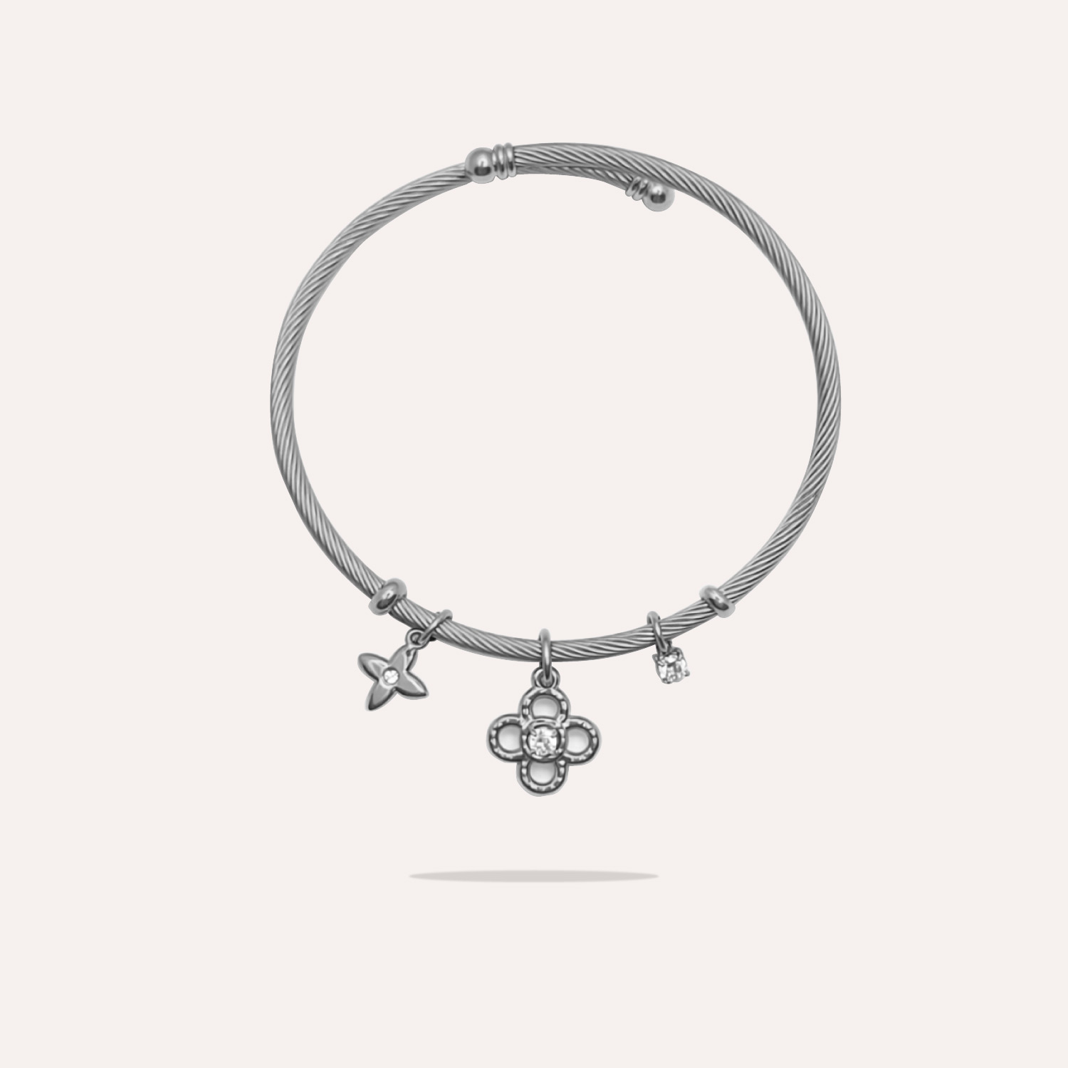 Bracelet jonc à breloque torsadé en acier inoxydable.